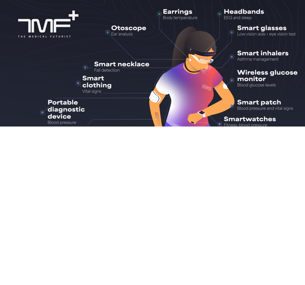 Today’s wearables can be worn on the head, ears, arms, chest, waist, fingers, feet, and even skin—covering 18 unique body parts with specialized functions.